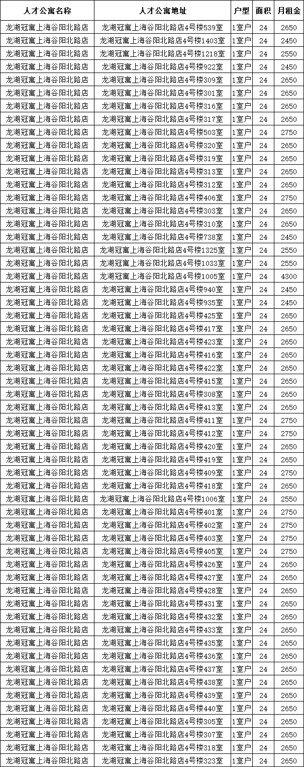 ▲龙湖冠寓上海谷阳北路店:57套