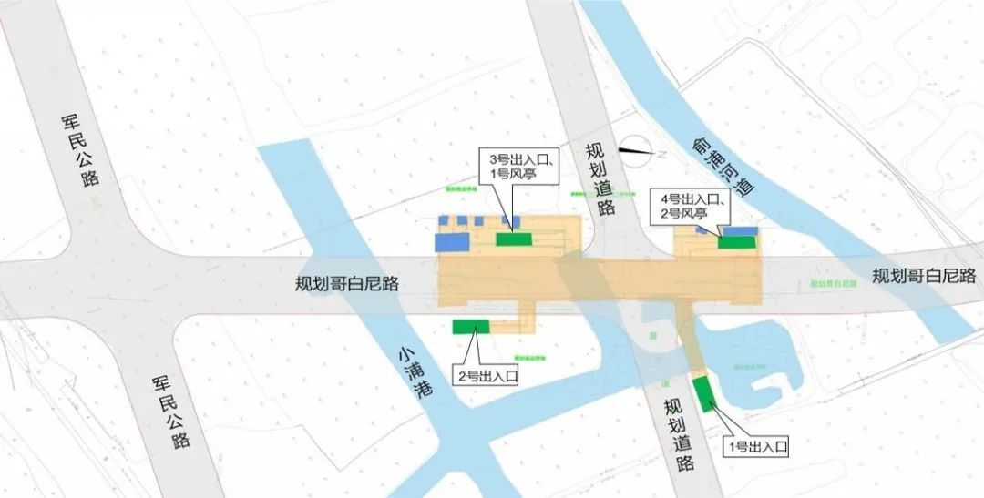 军民路站是21号线一期工程首个开工的车站,为由南往北第7座车站,车站位于浦东新区规划哥白尼路与规划道路交叉口,属于孙桥科创中心(张江在线)中间区域,站点建成后将成为该区域TOD规划模式的核心交通点,为未来孙桥科创的发展注入活力。