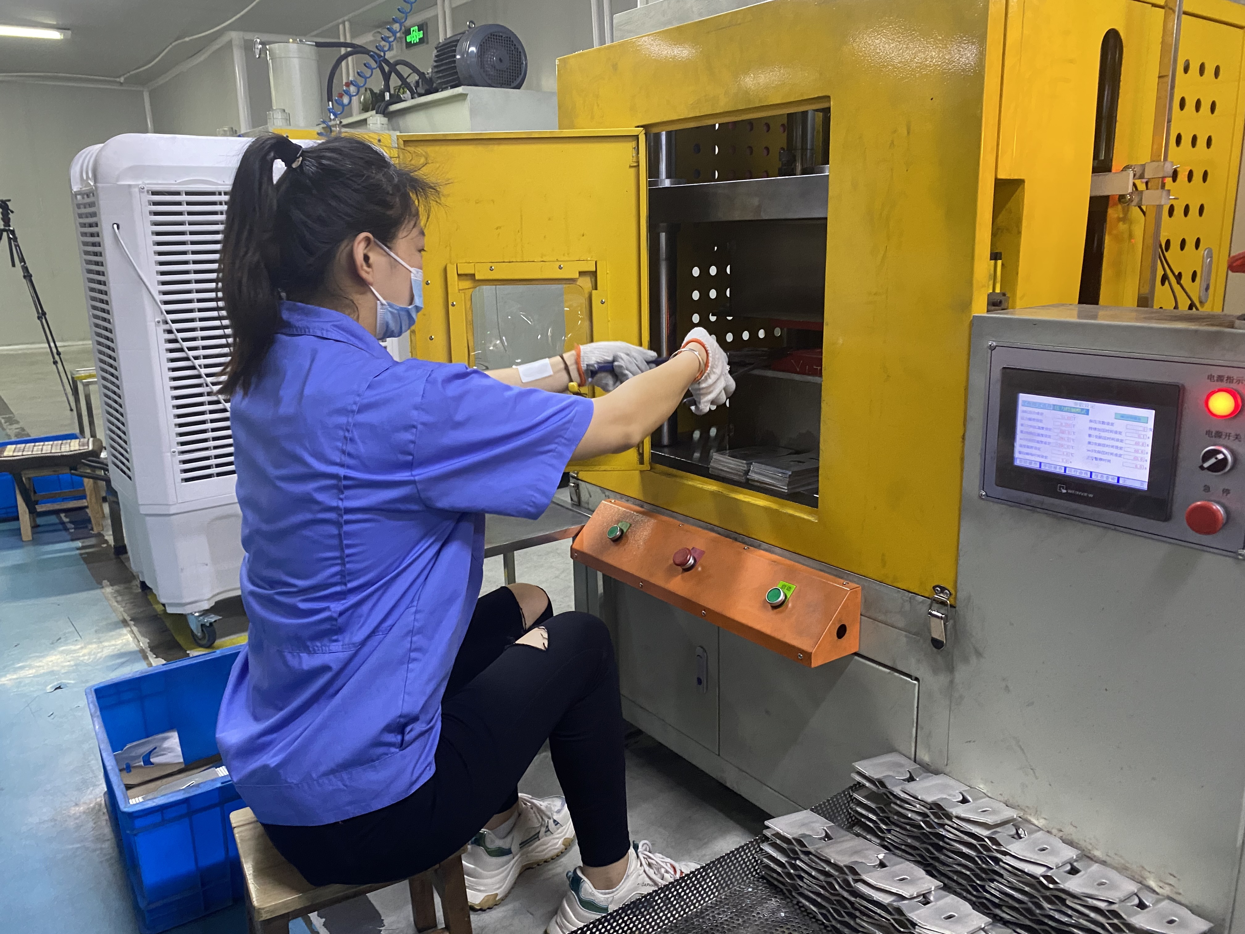走进上海科达利五金塑胶有限公司的感应焊车间,犹如进入了桑拿房。46台感应焊设备整齐排列,每台设备都是一个“高温炉”。工人们每隔5分钟就要打开一次“炉门”,当“炉门”被打开时,阵阵热浪袭人。车间里安装了中央空调和立式空调,还为每名员工配备了冷风机和电风扇。但即便如此,墙上的温度计仍显示,气温已达40摄氏度。