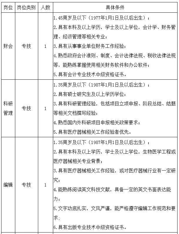 2.具备招聘岗位要求的条件(详见具体条件)。