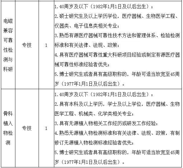近日,上海市医疗器械检验研究院面向社会公开招聘财会1人、科研管理1人、编辑1人、生物学安全评价1人、有源植入物检测1人、电磁兼容可靠性检测与科研1人、骨科植入物检测1人!应聘人员请相关应聘材料发送至邮箱cmtczhaopin@126.com,或将复印件邮寄至上海市医疗器械检验研究院人事,电子邮件文件名和邮寄信封上注明:姓名—应聘岗位。报名时间从即日起至2022年7月31日。
