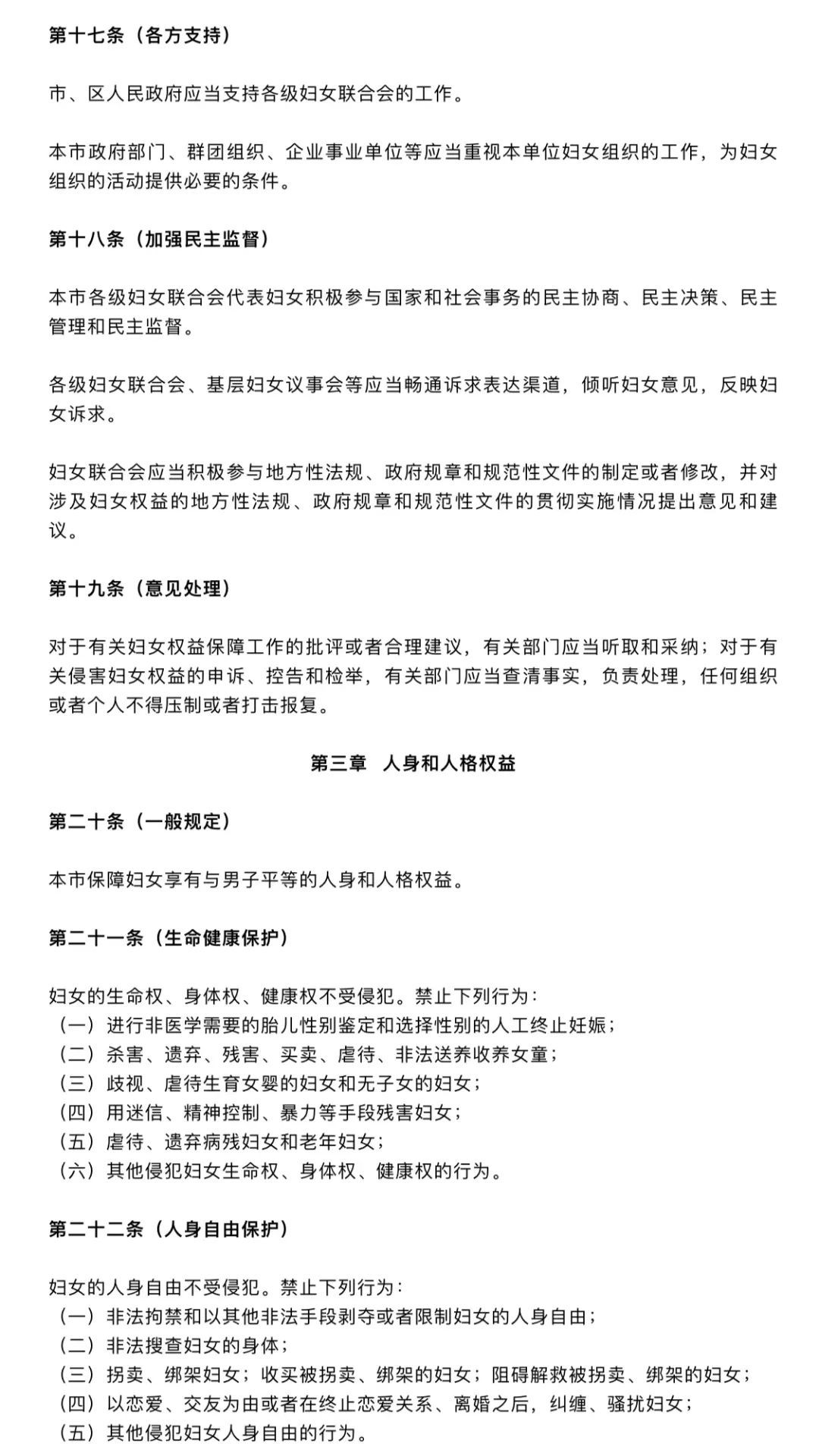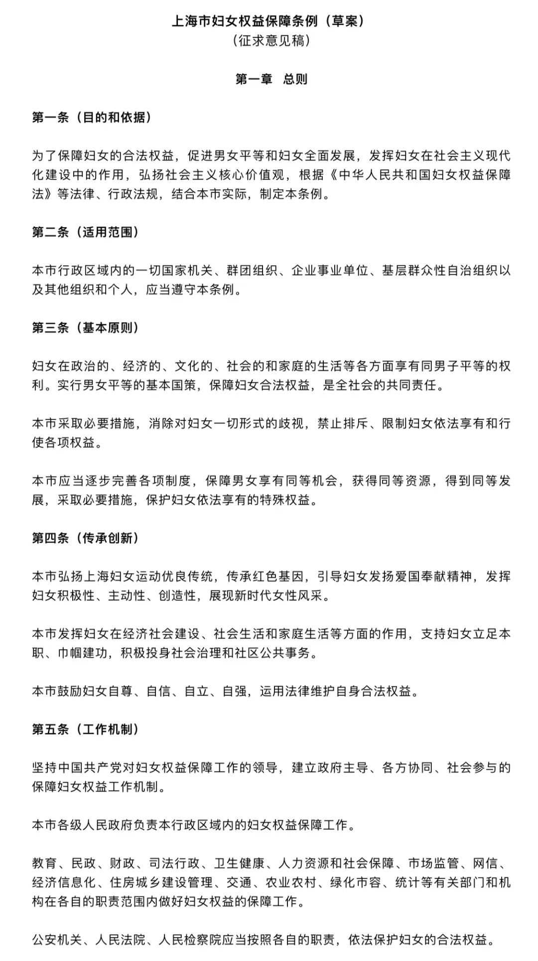 上海市妇女权益保障条例(草案)征求意见稿