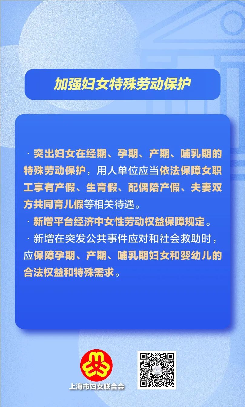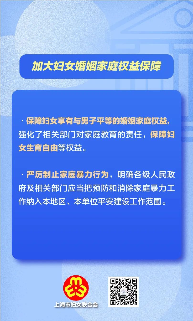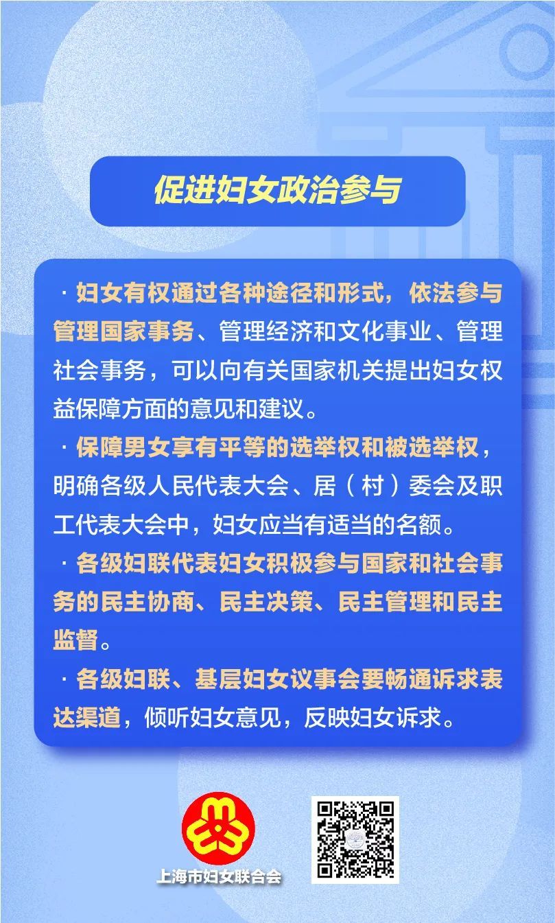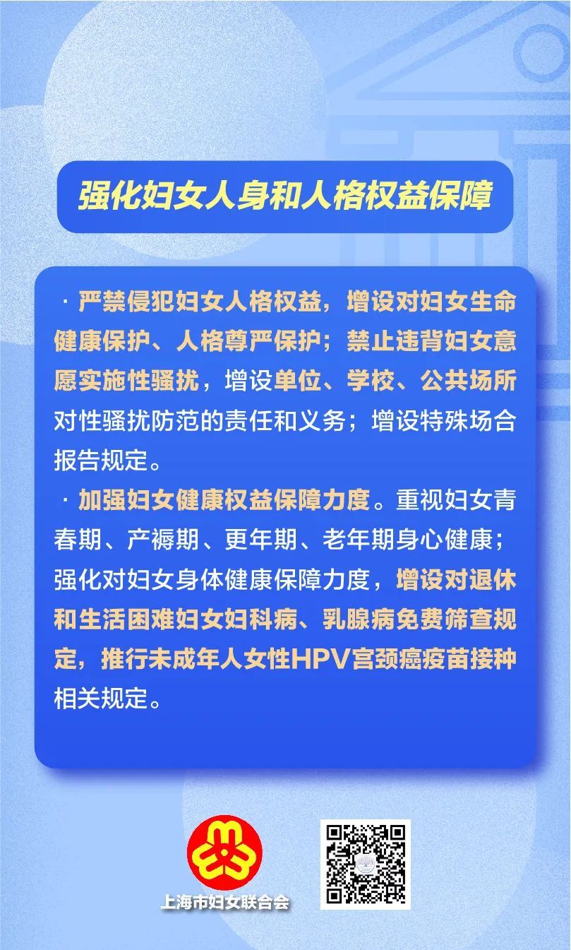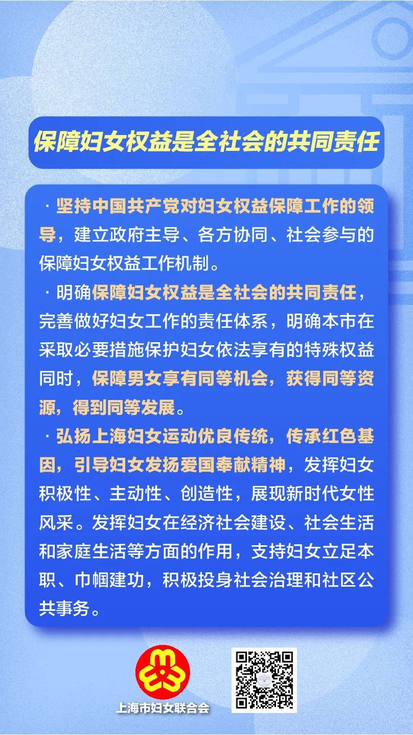 市十五届人大常委会第四十一次会议对《上海市妇女权益保障条例(草案)》进行了审议,这是自2007年《上海市实施<中华人民共和国妇女权益保障法>办法》修订以来,上海市妇女权益保障法律法规废旧立新的大修法。