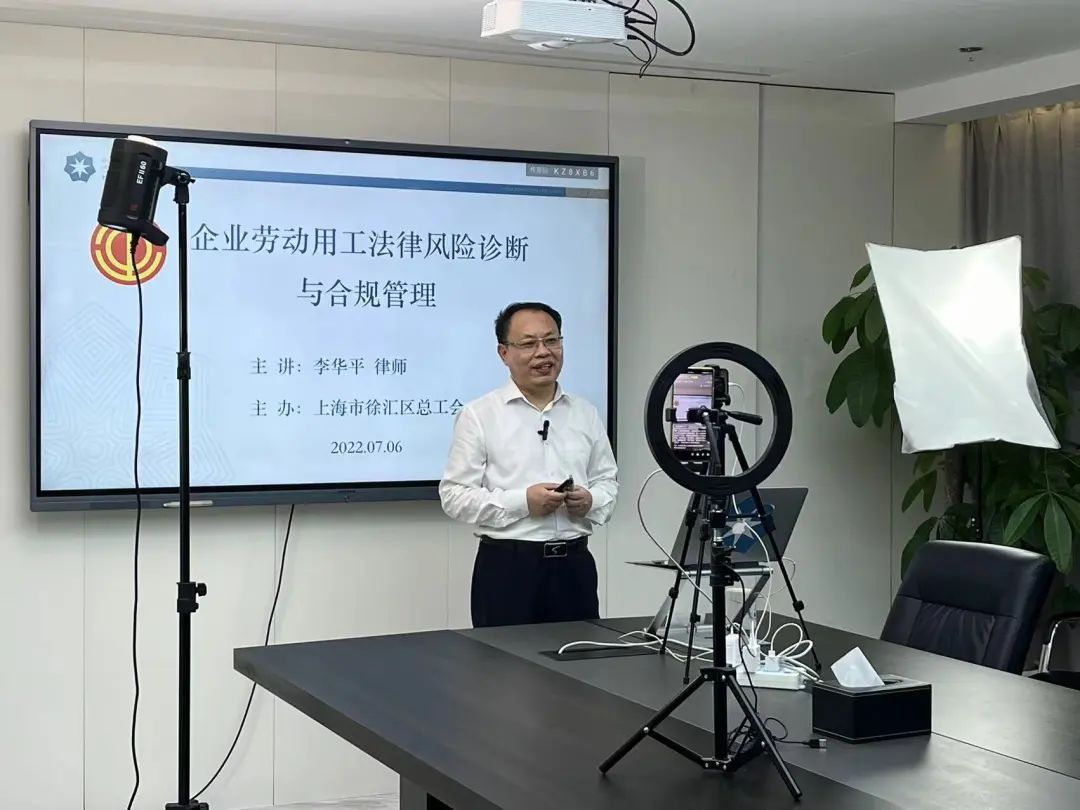 近来,为帮助企业能够更好预防劳动用工风险、更加规范用工管理、有效化解劳动关系矛盾,建立规范有序、公正合理、互利共赢、和谐稳定的劳动关系,徐汇区总工会特邀请了上海市总工会法律顾问团成员、上海七方律师事务所首席合伙人李华平律师开展线上直播课程,第二期课程为企业和职工们带来的是《企业劳动用工法律风险诊断与合规管理》专题培训。