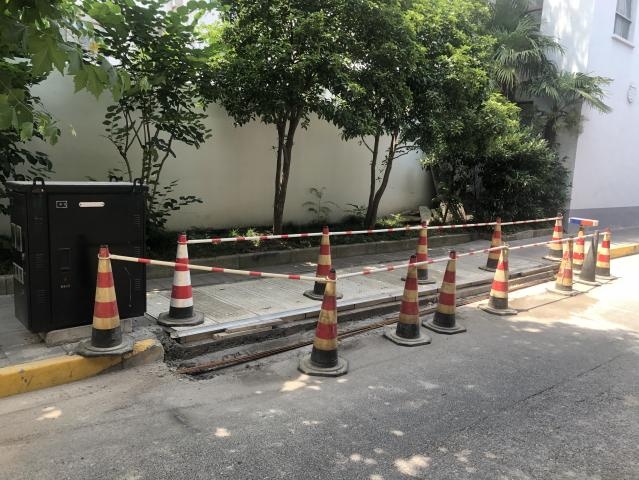 群众诉求无小事,面对市民的迫切诉求,徐汇区市政管理中心高度重视,立即组织了相关管线单位赴现场踏勘。经过核实,中山南二路811号门口为电力井,存在井身过宽、延伸占用行车道的问题,给过往车辆通行带来不便,具有一定的安全隐患。经过路政部门研判,要彻底消除隐患,需将电力井井盖完全后移至人行道内进行整体改造,一方面电力井盖下面是高压电缆,另一方面电力井“瘦身”需要突破常规,量体裁衣,根据现场实际情况定制新的井体及井盖,所以改造施工难度较高,危险系数较大。