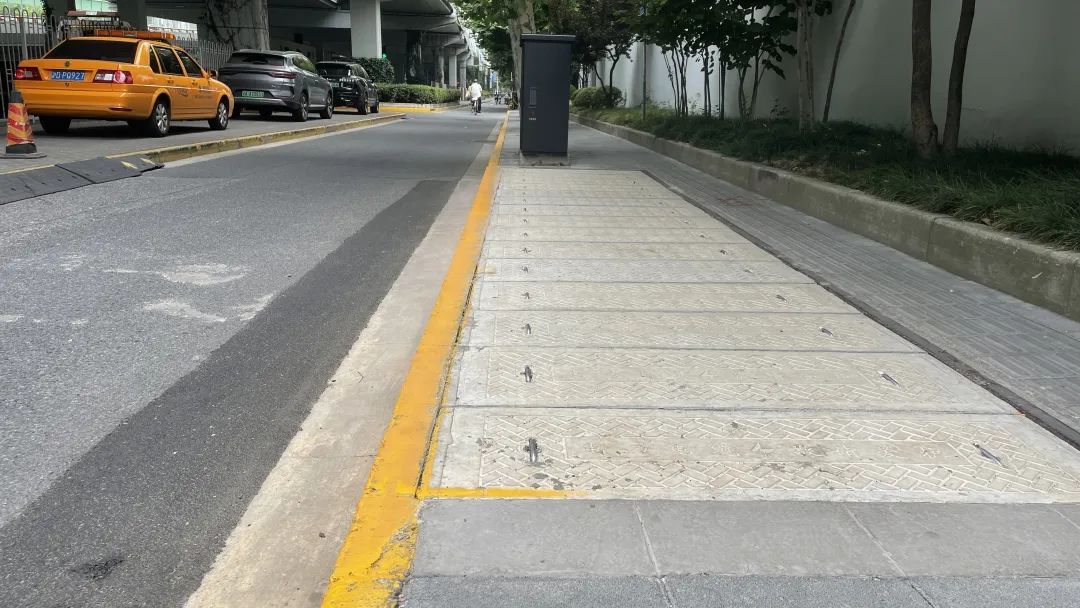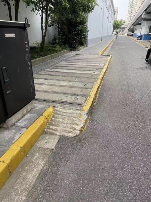 采访中,张海涛告诉记者:“这和通常的盖板不一样,因为考虑到人行道,我们定制的防滑盖板是由钢筋混凝土混合而成,厚度为12厘米,有足够的强度,而且上面有防滑纹,这样能保障行人的行走安全。”