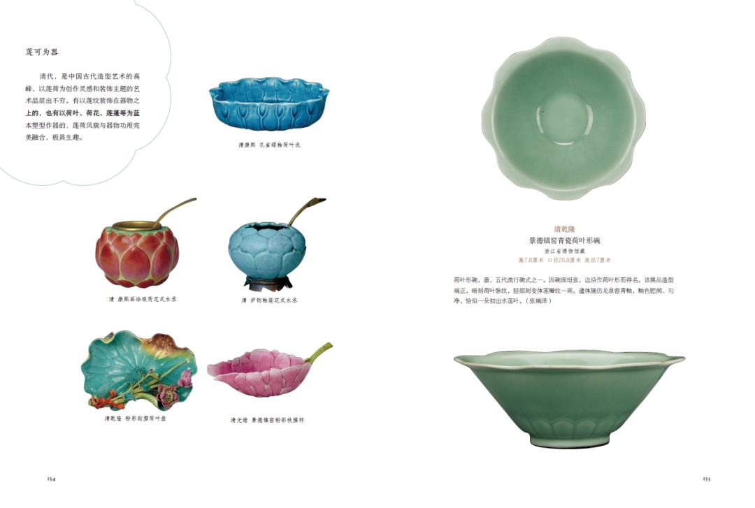 清代,是中国古代造型艺术的高峰,以莲荷为创作灵感和装饰主题的艺术品层出不穷。有以莲纹装饰在器物之上的,也有以荷叶、荷花、莲蓬等为蓝本塑型作器的,莲荷风貌与器物功用完美融合,极具生趣。