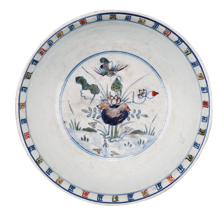 清雍正 景德镇窑斗彩荷塘鸳鸯纹碗