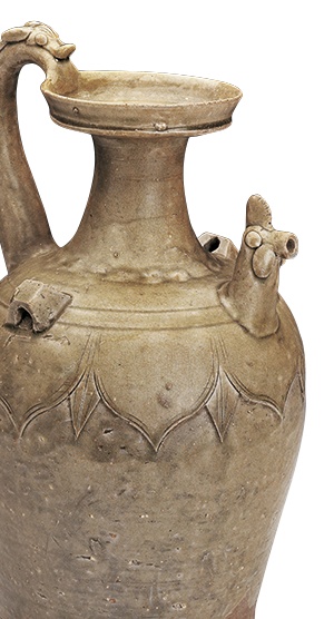 南朝 越窑青瓷莲瓣纹龙柄鸡首壶