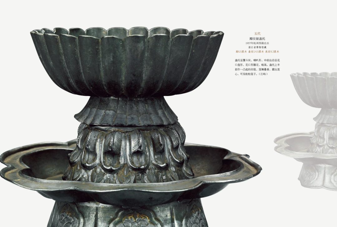 宋人爱花,所用之物每与花事相连,器物的造型和纹饰多取意于花卉。江南地区夏日以荷景最盛,荷叶荷花自是入诗入画入器,文房雅玩、家具陈设、茶酒香事,均与荷花结缘,用赏之余,妙趣横生。取式于荷叶荷花制成象生杯盏或附以荷花做纹饰的茶、酒、香具,在宋代金银及瓷质器具中多见。