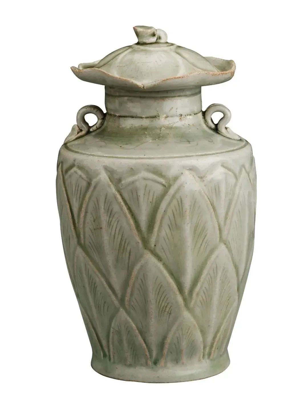 北宋 龙泉窑青瓷莲瓣纹盖瓶