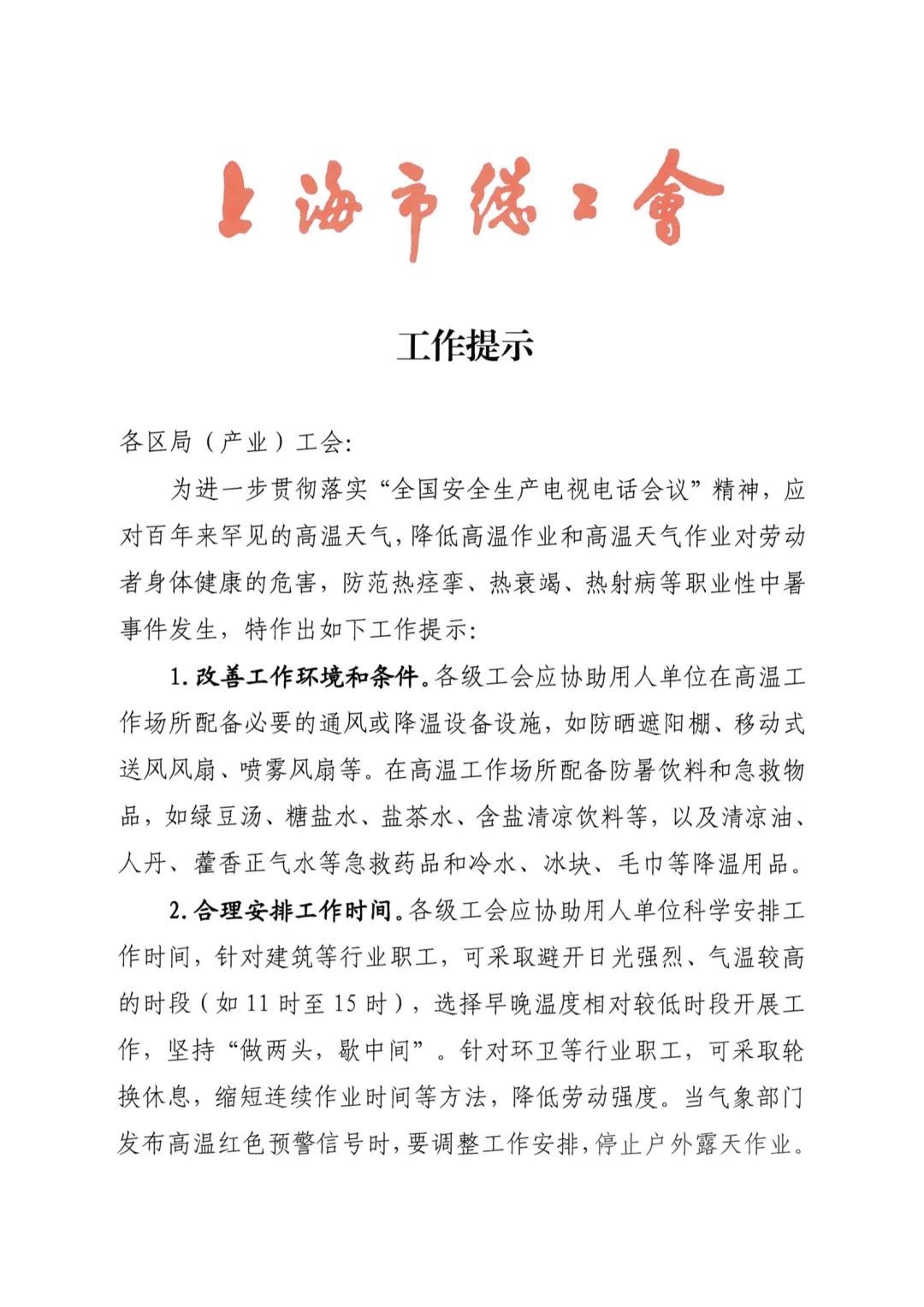 ● 上海市总工会于6月21日印发了《关于组织开展2022年夏季职工劳动保护和防暑降温工作的通知》,带来了8件“凉”策。(戳我了解详情→)