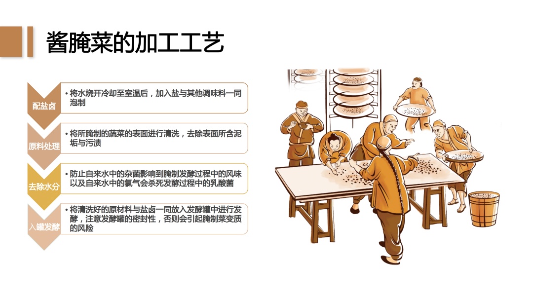 古人为了存储剩余的蔬菜,研制出了酱腌菜。经过不断的传承,逐渐形成了独特的生产工艺。
