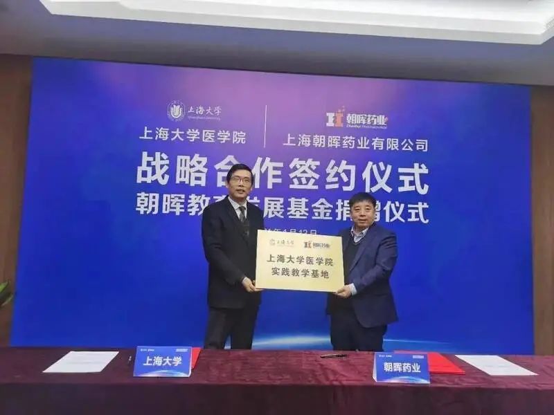 如何更好地吸引人才?2021年初,朝晖药业与上海大学医学院签署战略合作协议,宣布共建上海大学医学院研究生实践基地,以此推进生物医药高端创新型人才的培养。与此同时,朝晖药业向上海大学教育发展基金会捐赠50万元,用于支持优秀人才的培养。