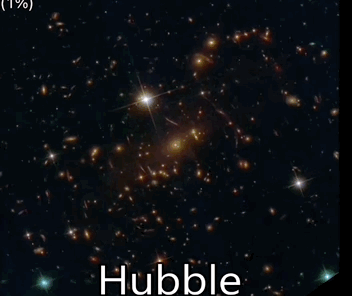 网上有人制作了从哈勃和韦伯观测SMACS 0723星系团同一位置时的对比gif,从模糊到清晰