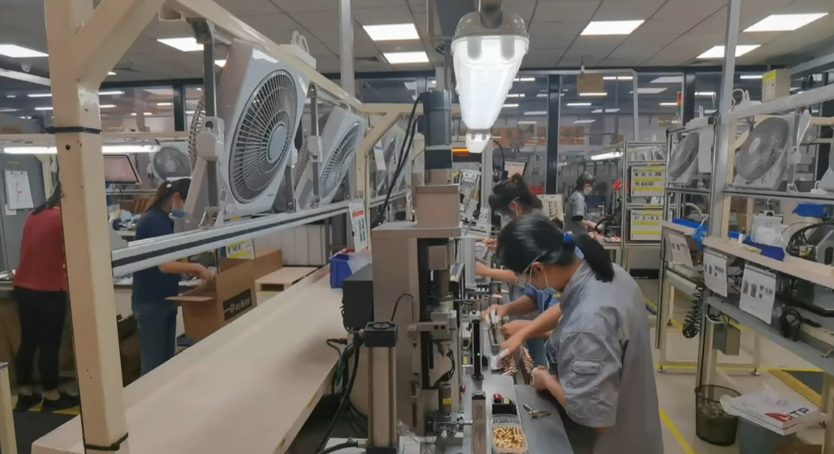 走进派克汉尼汾动力传动产品(无锡)有限公司,只见车间内员工均佩戴口罩,忙碌在生产线上。7月7日起,来自生产、质量、制造工艺、设备厂务、仓库及后勤支持的近百名员工开始进入“吃住在工厂”闭环生产模式。