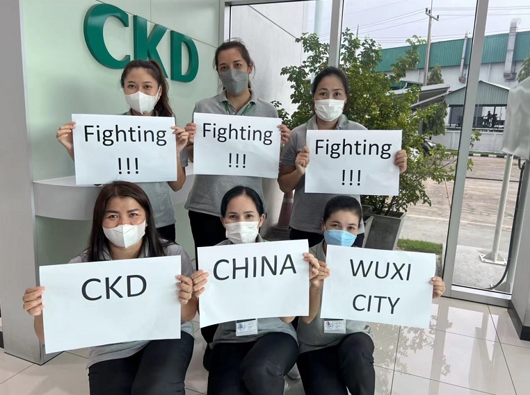 “同心协力,无锡加油!”“无锡辛苦了,谢谢!”这些天,CKD日本总部及全球各生产基地纷纷给坚守生产的无锡公司送来充满正能量的声援。面对集团兄弟公司的殷切关怀与问候,无锡公司逐一回复:“感谢支持!中国公司全体员工将齐心协力,继续与海外工厂紧密合作,全力以赴满足世界各地的客户需求。”