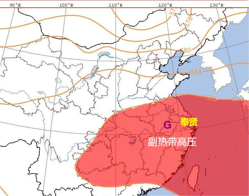对于奉贤地区而言,在夏季制造出持续而高强度的高温热浪天气的元凶一般都是——西太平洋副热带高压。