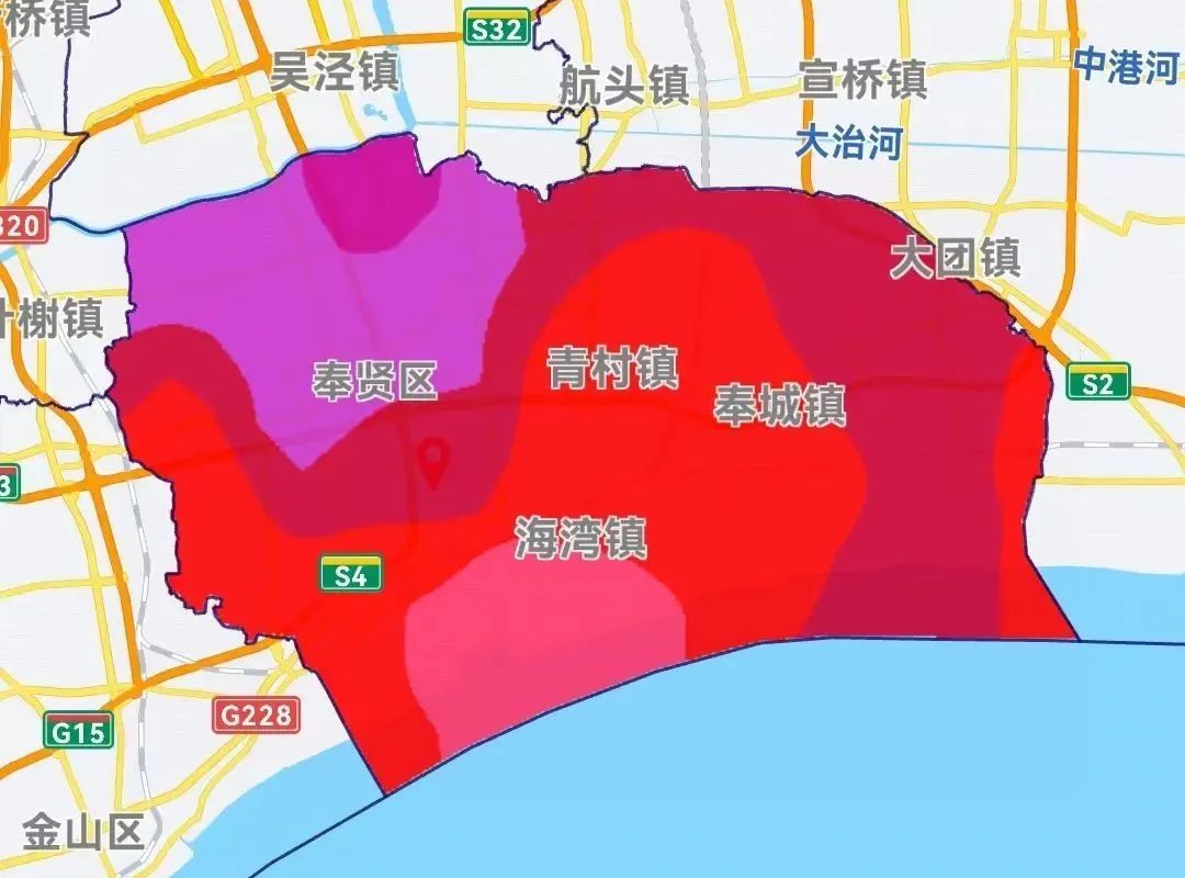 而奉贤区域气象站资料则显示,奉贤高温分布呈现北高南低、北多南少的特点,南部沿海地区由于杭州湾海面降温作用,气温比中北部地区明显偏低。今天北部地区最高气温已突破41度,而海边则在34度上下。