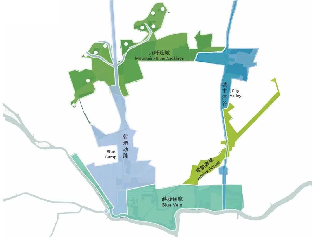 《城市起搏器 蓝绿聚能环》功能片区划分图