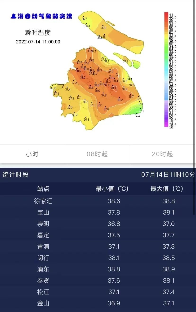 上海中心气象台2022年07月14日11时05分更新高温橙色预警信号为高温红色预警信号:受副热带高压影响,预计今天中心城区、浦东、闵行等地的最高气温将达到40℃,高温橙色预警信号更新为高温红色预警信号。