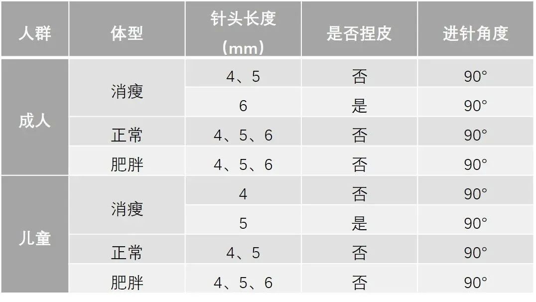 tips:是否需要捏皮注射胰岛素,跟体型、注射笔的针头和注射部位有关。