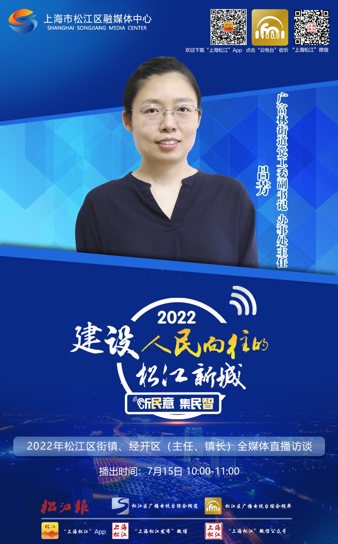 7月15日,以“建设人民向往的松江新城”为主题的2022年度“听民意·集民智”夏令热线将邀请广富林街道党工委副书记、办事处主任吕芳走进区融媒体中心广播可视化直播间,通过视频、音频连线和可视化直播的方式,倾听市民对民生建设、社区治理工作的意见建议,解决市民在夏令期间的“急难愁盼”。