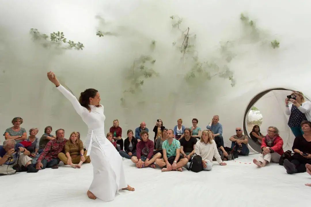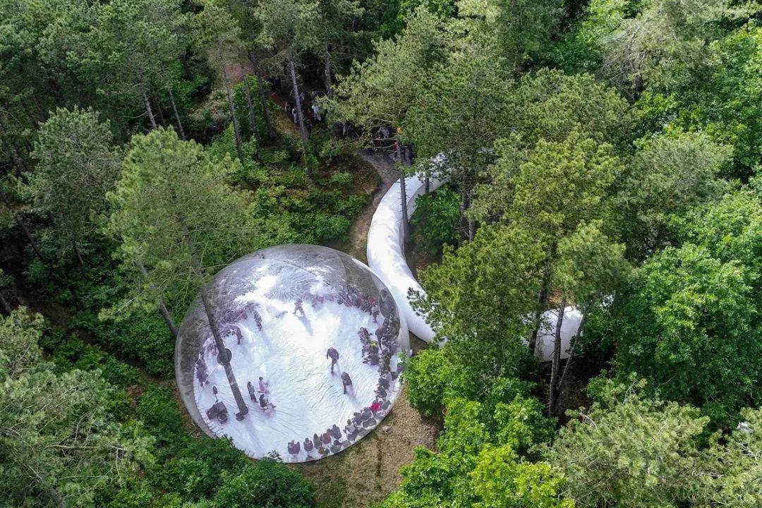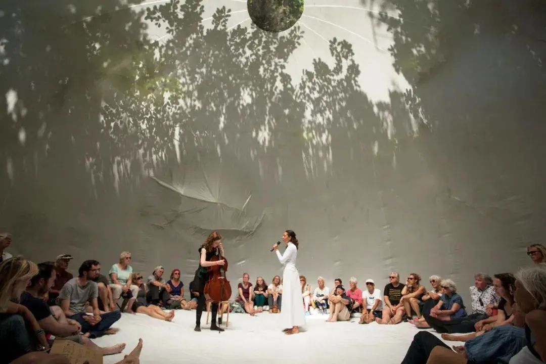 利用了塑料薄膜,坐在轻盈的“气泡”内,观众不仅可以在独立的空间内观看演出与自然景色,同时还能感受到了不同于剧场的音乐会声场效果。