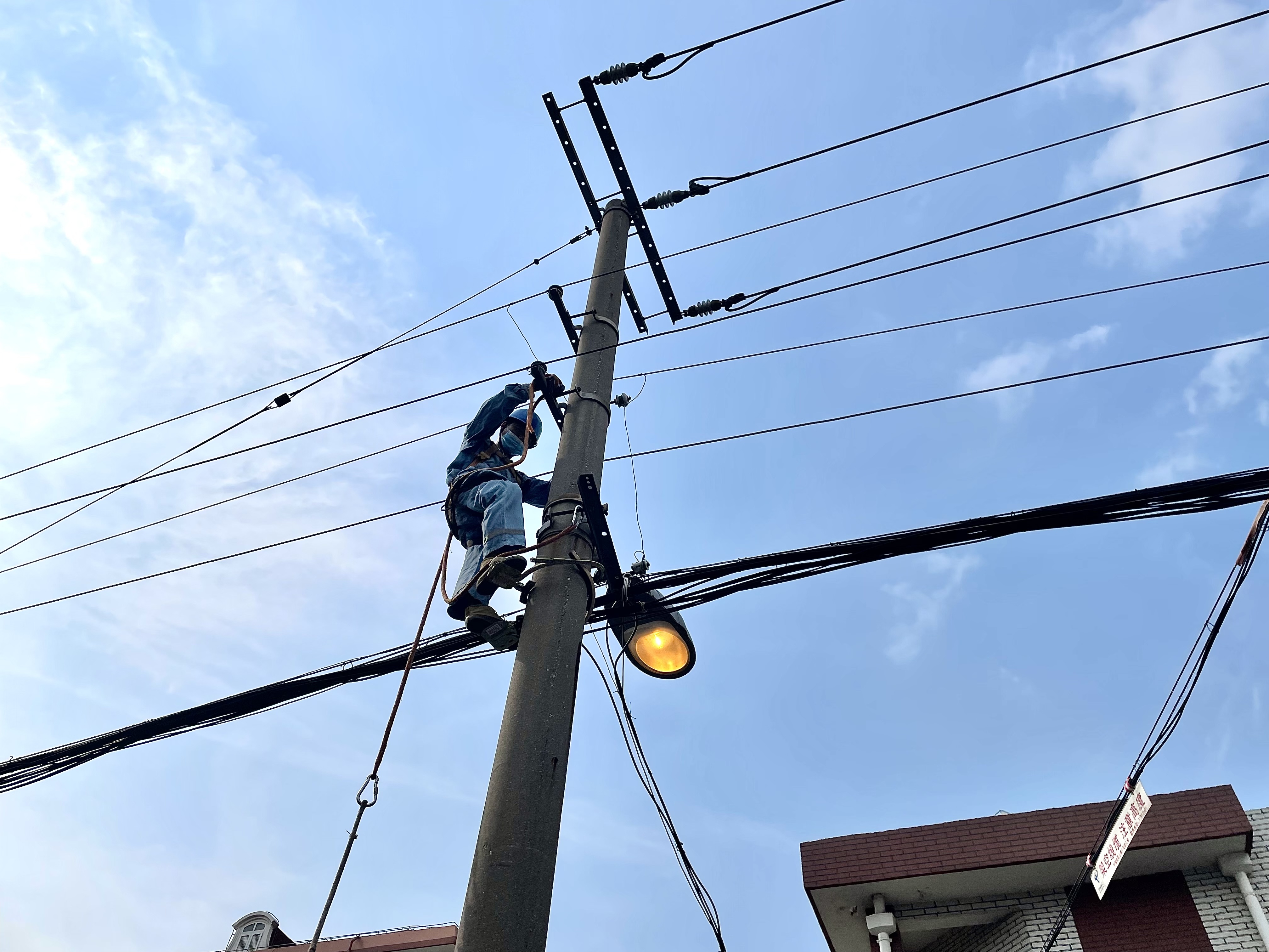 忙时一天跑六七个小区;短短几秒,电线杆就烫得手掌通红。连日来天气持续高温,全区用电量也不断攀升。电力抢修工人每天忙碌奔波于一线,用汗水换来万家“光明”与“凉爽”。