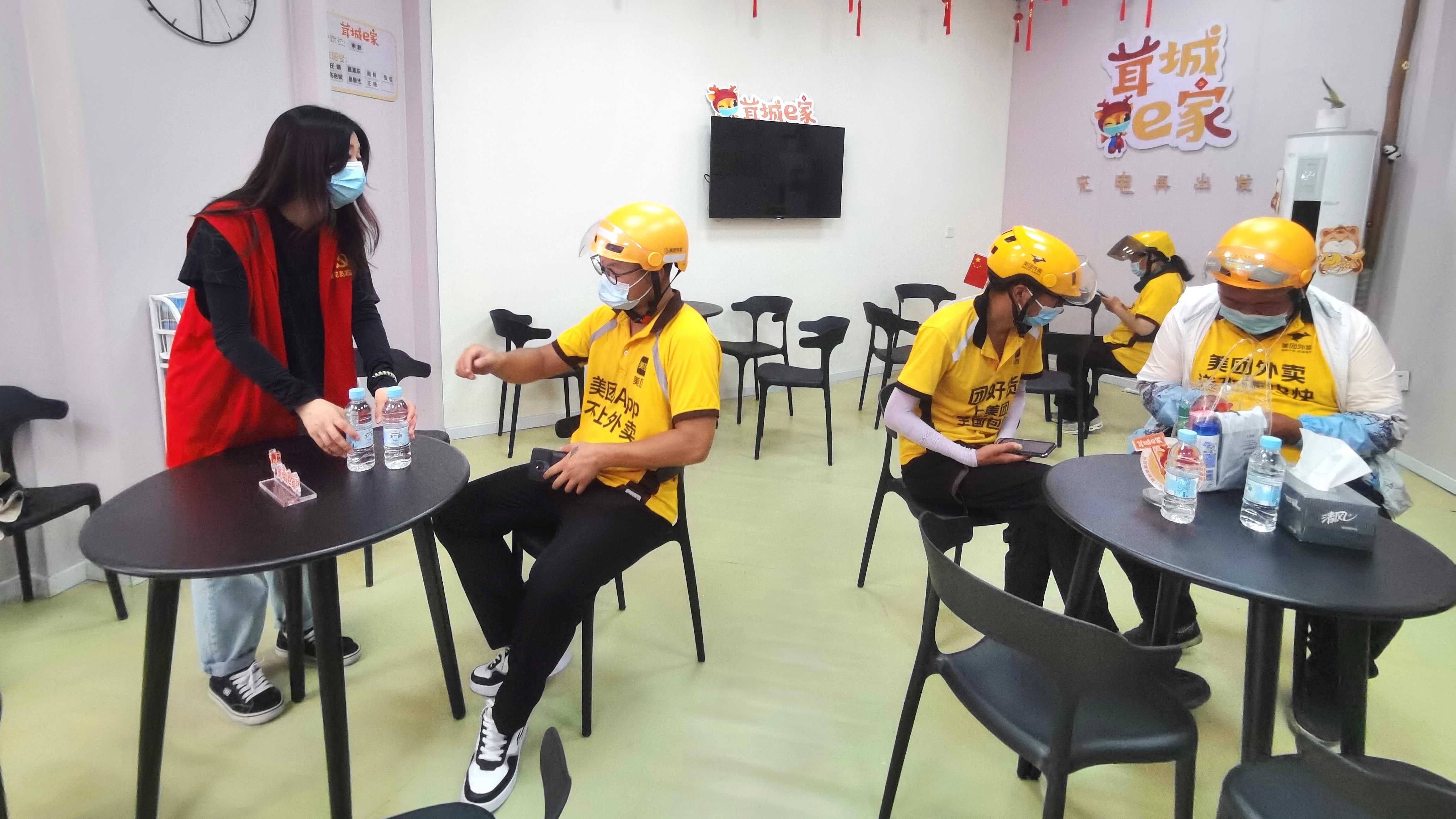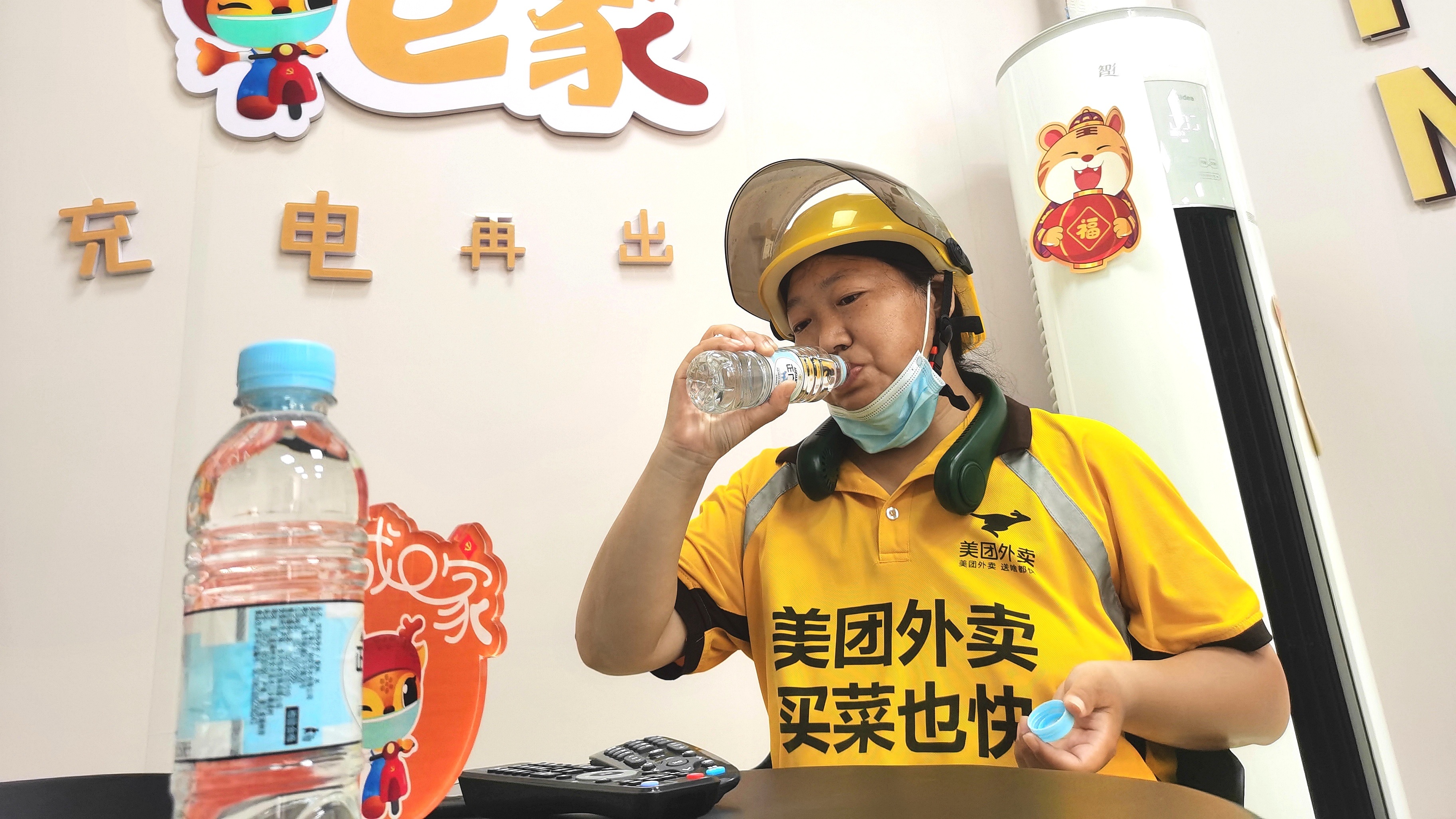 “在外面跑单太热了,从40℃的户外到25℃的室内,太凉快了!”7月14日上午11时,在地中海开元商业广场的“茸城e家”户外职工爱心接力站,上午跑了19单的外卖骑手陆慧秋快步走了进来,找到靠近空调的一处桌椅坐下来休息。她一边大口喝水,一边擦拭额头上不时冒出的汗珠。“幸好有这么个‘歇脚处’,这个天气长时间在外工作可真受不了。”陆慧秋说。