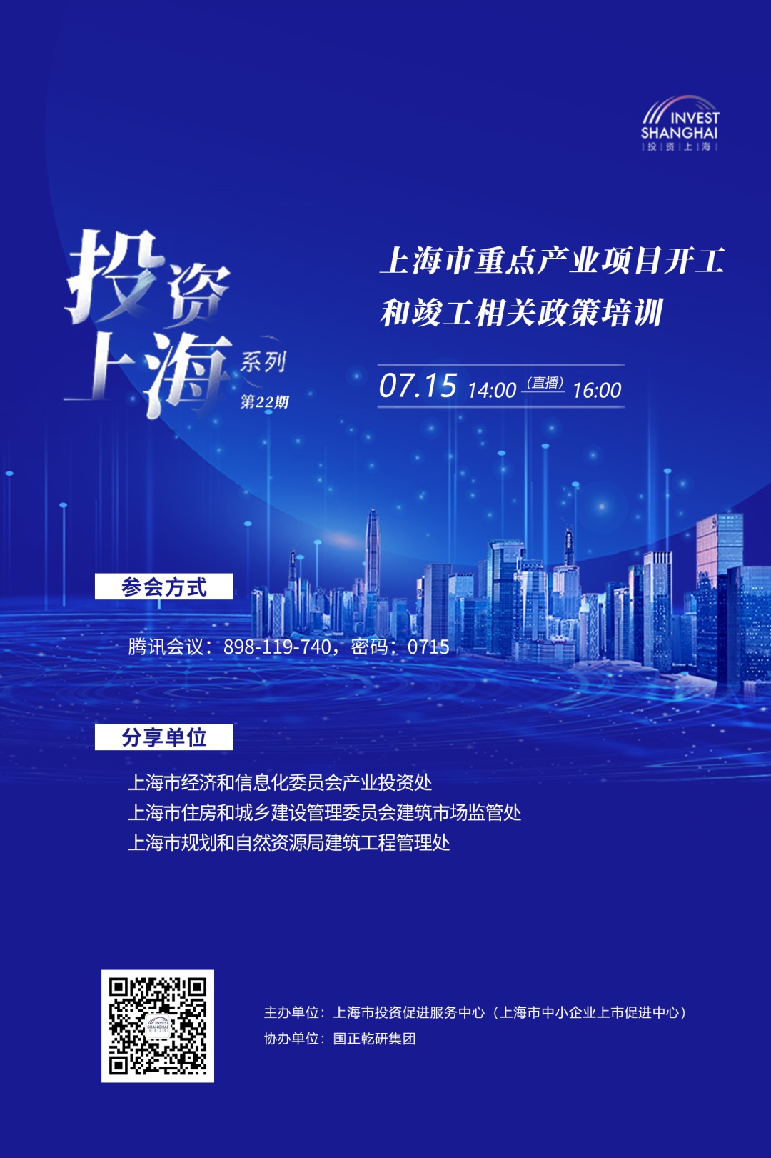 “投资上海”系列能力提升计划第 22 期,邀请上海市住房和城乡建设管理委员会、上海市规划和自然资源局作施工许可、竣工验收、规划资源审批等方面的政策解读,促进招商引资项目早开工、早竣工,推动经济高质量发展。