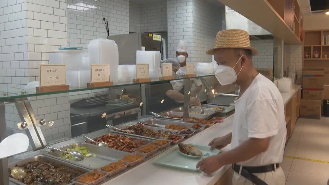 虽然自7月起,华泾镇社区食堂已恢复堂食,不过更多居民还是选择了打包,或者自带餐盒。住在附近的王老伯就选择打包了酱鸭腿、番茄炒蛋等7种菜,满足了荤素搭配。“我买了两顿的饭菜,这样省的回家还要再做。这边饭菜的味道不错,用的食材看起来也很新鲜。”