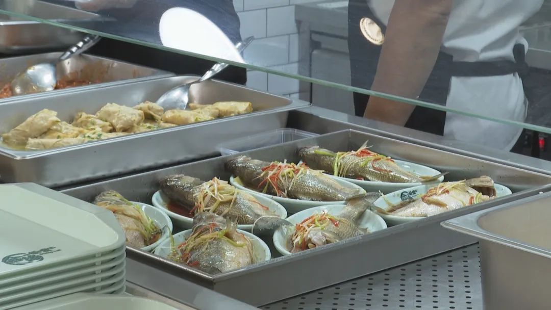 夏季的食堂对菜品新鲜提出了更高要求,没控制好就容易变质或有剩余。华泾镇社区食堂采取分批次上菜的方式,而非一次性全部烧完,这样既能保证产品的口感和新鲜度,也能较好地控制损耗。“我们会在前一天订货采购,第二天早晨就能到货,我们早晨六点半左右开始准备切菜、配菜,保证每天菜品新鲜。