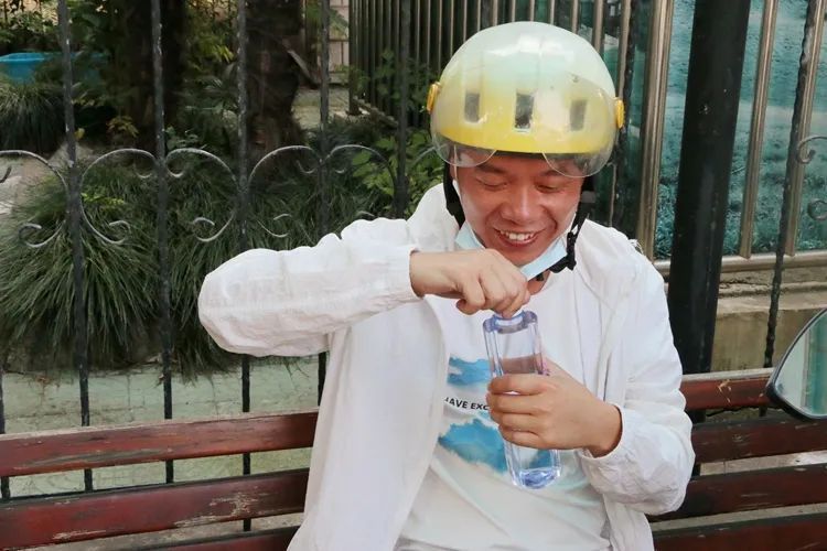 蒋健生是一名外卖配送员,每天6点便开始一天的工作。“累了都会来驿站坐一会儿,刚才店家告诉我,从今天起每天可以在这里免费领一瓶水喝。”