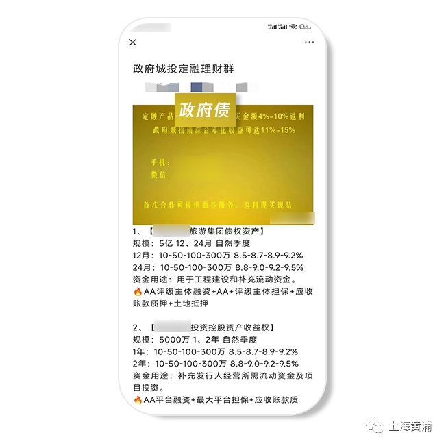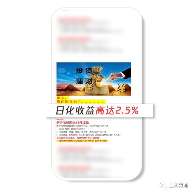 ● 微信公众帐号发布的内容中,禁止高收益理财欺诈内容,如推广不正常的高回报理财产品或导流欺诈项目。其中的“导流欺诈项目”通常表现为未明确日化或年化收益,但通过可疑的引导性内容,诱导用户添加个人微信或外链推广高收益理财产品。