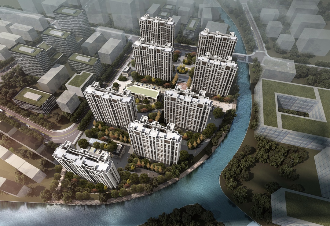 在蜿蜒的贝港河畔与南横泾交汇处,15-02地块农民相对集中居住项目贝联珠贯,矗立于此,洁白的墙面在阳光的照耀下熠熠生辉。
