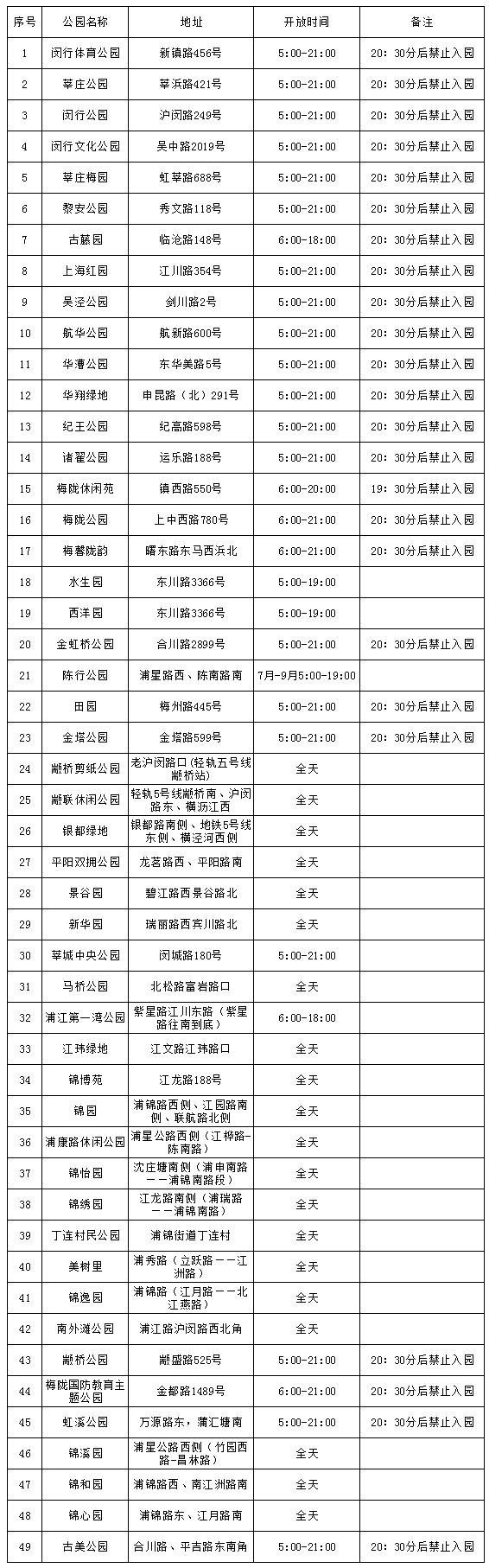 记者从区绿容局所获悉,因疫情缩短开放时间的城市公园,7月15日起恢复原先开放时间。49座城市公园中除部分开放式(无围墙)公园24小时开放外,市民喜爱的夜公园也回来了:它们多数早5点开园,晚9点闭园。