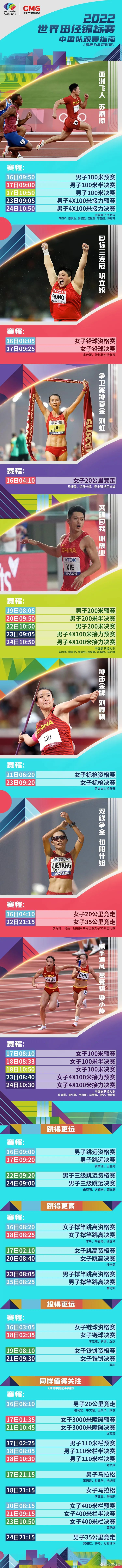 今年5月,中国田径男子4×100米接力队正式递补获得东京奥运会铜牌,这也是中国田径队在奥运会接力项目中收获的最好成绩。本届世锦赛,中国男子接力队除保留苏炳添、谢震业、汤星强和吴智强的东京奥运会主力之外,还选拔陈冠峰、邓智舰两名00后小将参赛。