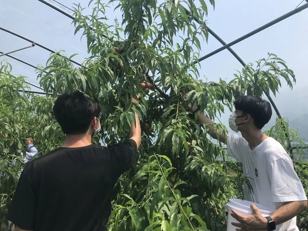 “因为天气炎热,我们每天早上六点开始采摘,到九点左右结束。采好的桃子马上放置阴凉处通风,再根据订单分拣、包装和配送。”工作人员说。
