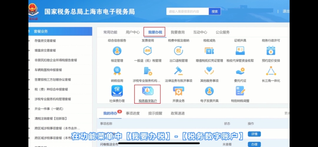 登录上海市电子税务局,在功能菜单中【我要办税】—【税务数字账户】中进入。