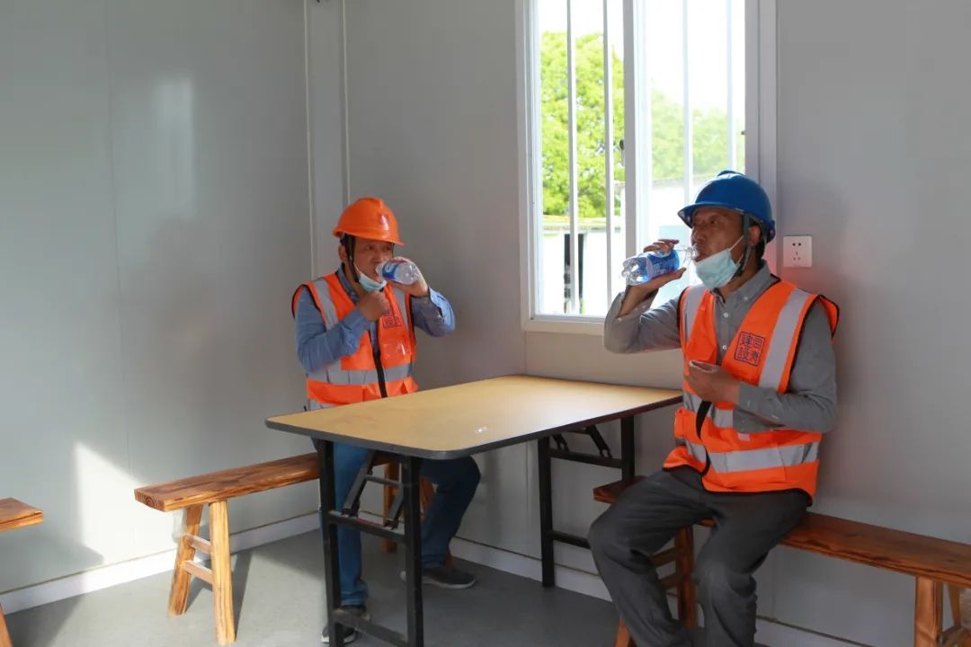 下午4点,杨行体育中心建设项目的参建人员准备进入工地进行室外装修的施工,项目部也及时为大家送来盐汽水等防暑降温用品。为更好地应对高温,项目部将7月份的施工方案也进行了调整。