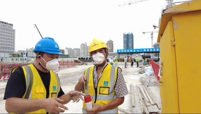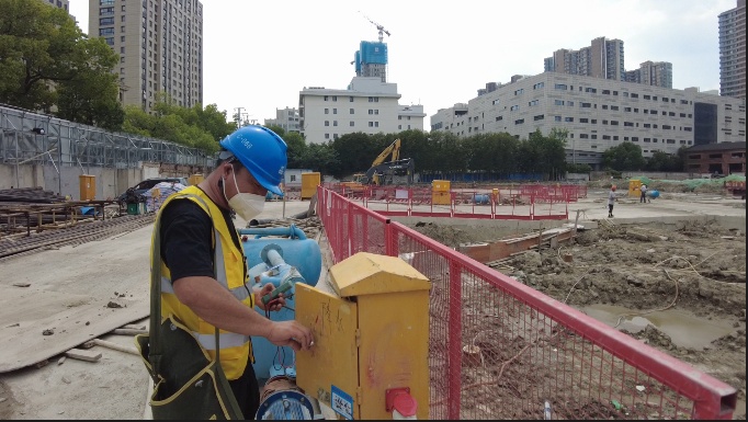 上午9点,气温快速攀升。静安天悦项目现场,钢筋的碰撞声、挖掘机的轰鸣声、工友们响亮的号子声奏出了“工地交响乐”。然而对于一刻也不能离开电力的工地来说,高温天却会带来许多预料不到的意外。这也使得有着10来年从业经验的电工宋新丰比平时要忙碌了不少。