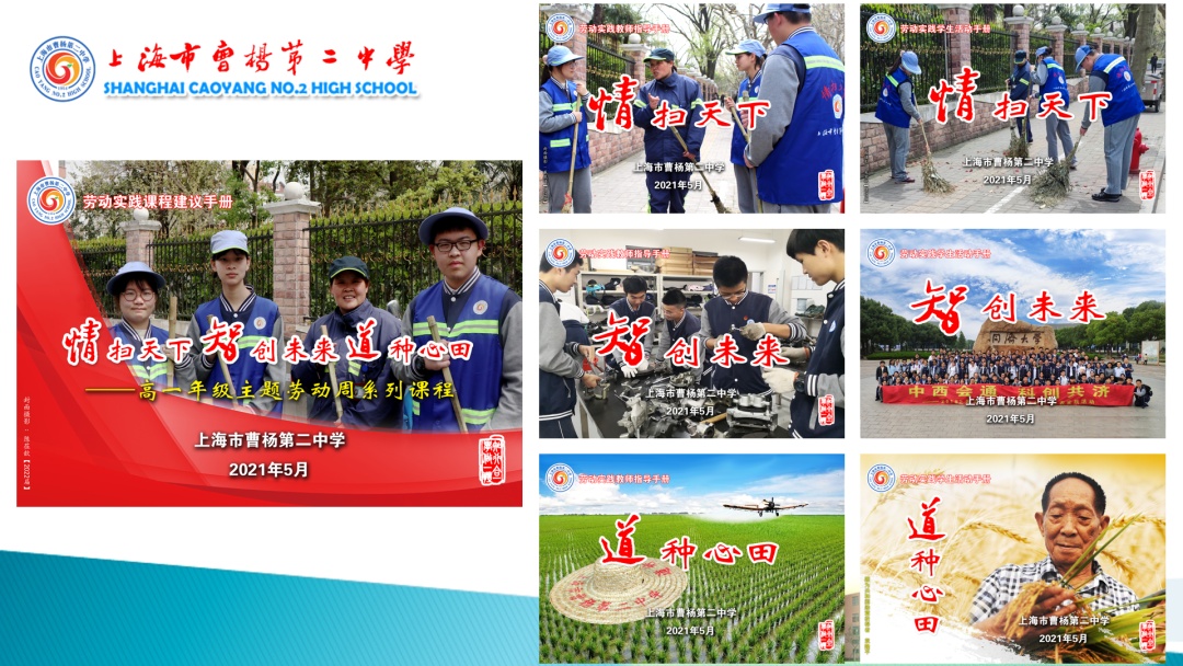 近年来,面对疫情发展新形势,学校全新设计了面向高一的劳动周系列课程和面向高二的社会实践课程。其中,“情”扫天下课程,普陀环卫劳模班组带领学生参与清扫街道等劳动,弘扬劳模精神;“道”种心田课程,学生在学农劳动中体悟艰辛、锻炼能力;“智”创未来课程,带领学生参观同济大学中德工程学院,结合理科特点提升创新能力……以社会实践为依托,逐步形成了具有“曹二”特色的“学劳模—懂尊重—强本领—重实践”的劳动教育课程链。