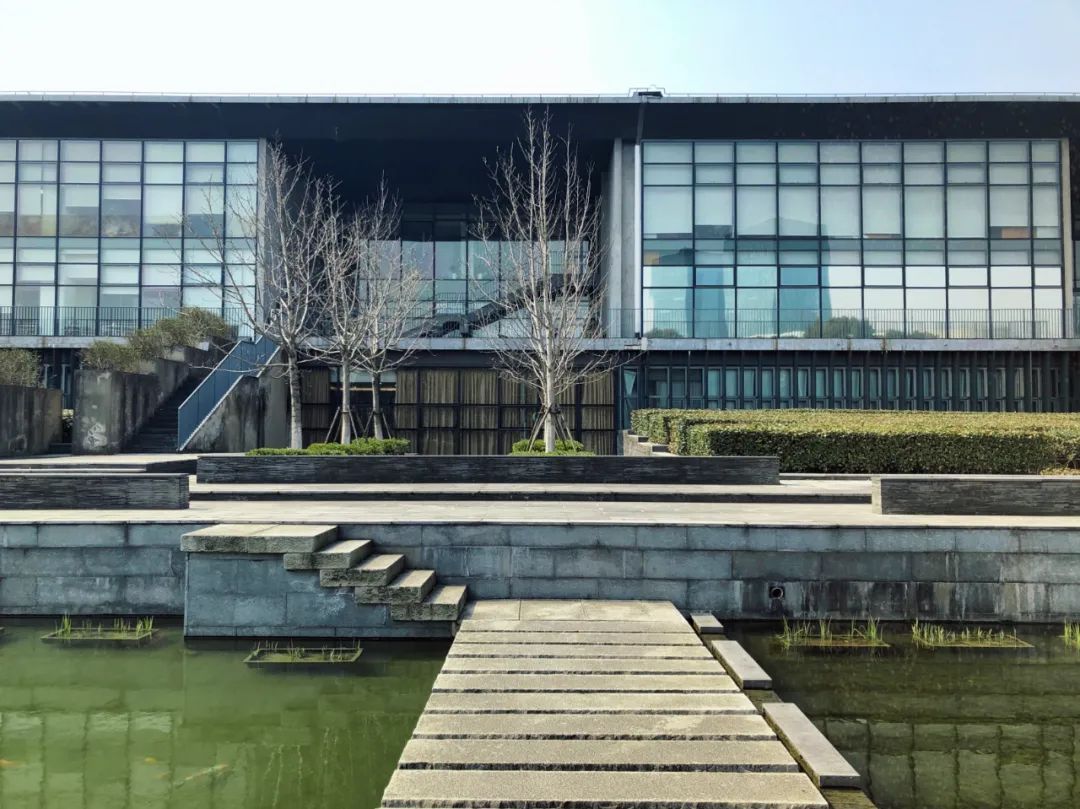 传统的深灰色石材与玻璃幕墙的灵活运用