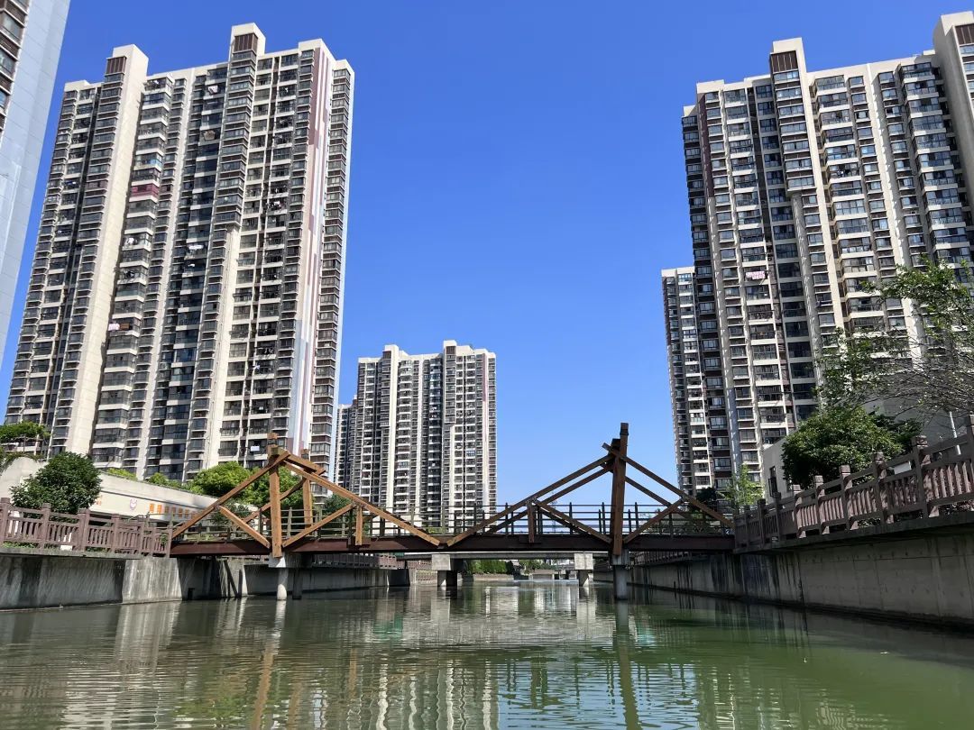 绕过昱翔佳苑向北是横沥河段,西岸是心青年公馆。上世纪六七十年代,这段水域船来船往、运输繁忙,不亚于现在的沪宜公路,是当时重要的交通要道。如今轨交11号线、嘉闵高架线等成为城市的主动脉,城市路网四通八达,这岸边的老石墩子,见证着南翔的古往今来,也见证着南翔城市化建设的飞速发展。
