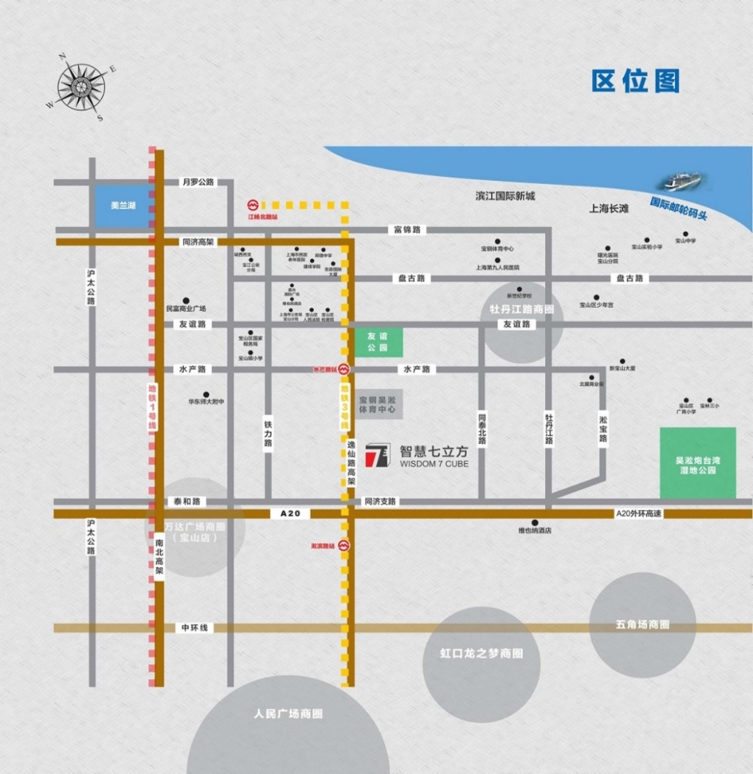 园区坐落于上海市宝山区同济支路199号,占地面积约1.4万平方米,总建筑面积约3.3万平方米。园区位于同济高架路淞滨路出口和水产路出口之间,毗邻地铁三号线水产路站,周边交通便捷。