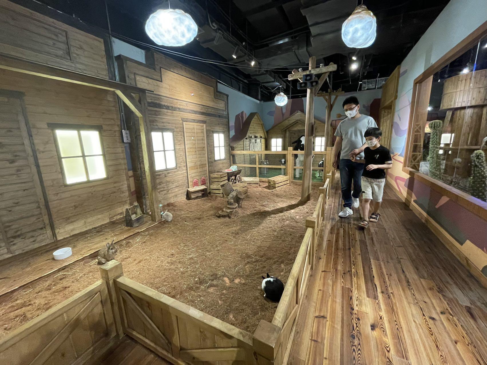 除了游玩的项目,还有小型牧场。土拨鼠,小仓鼠,安哥拉兔等各种小动物在里面等着和孩子一起玩乐。在室内也能一样亲近自然亲近动物。