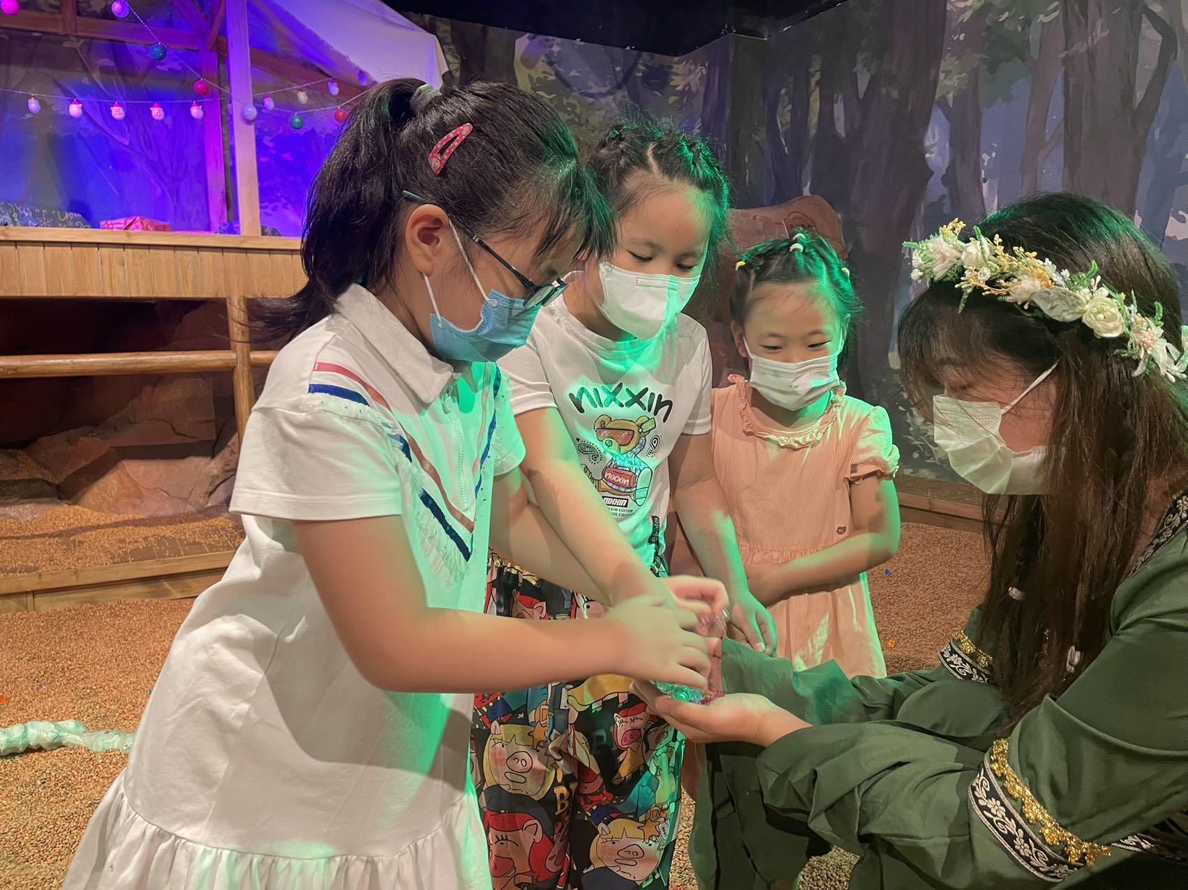 而为了能让小朋友游玩时更有代入感。“公馆”利用自己场景的优势,在双休日里,安排了适合孩子们的剧本杀活动。孩子们穿上特定服装,在工作人员扮演的NPC带领下,穿梭在各种场景之中,解锁各种迷题,既要动手也要动脑,全身心投入到科幻世界中。