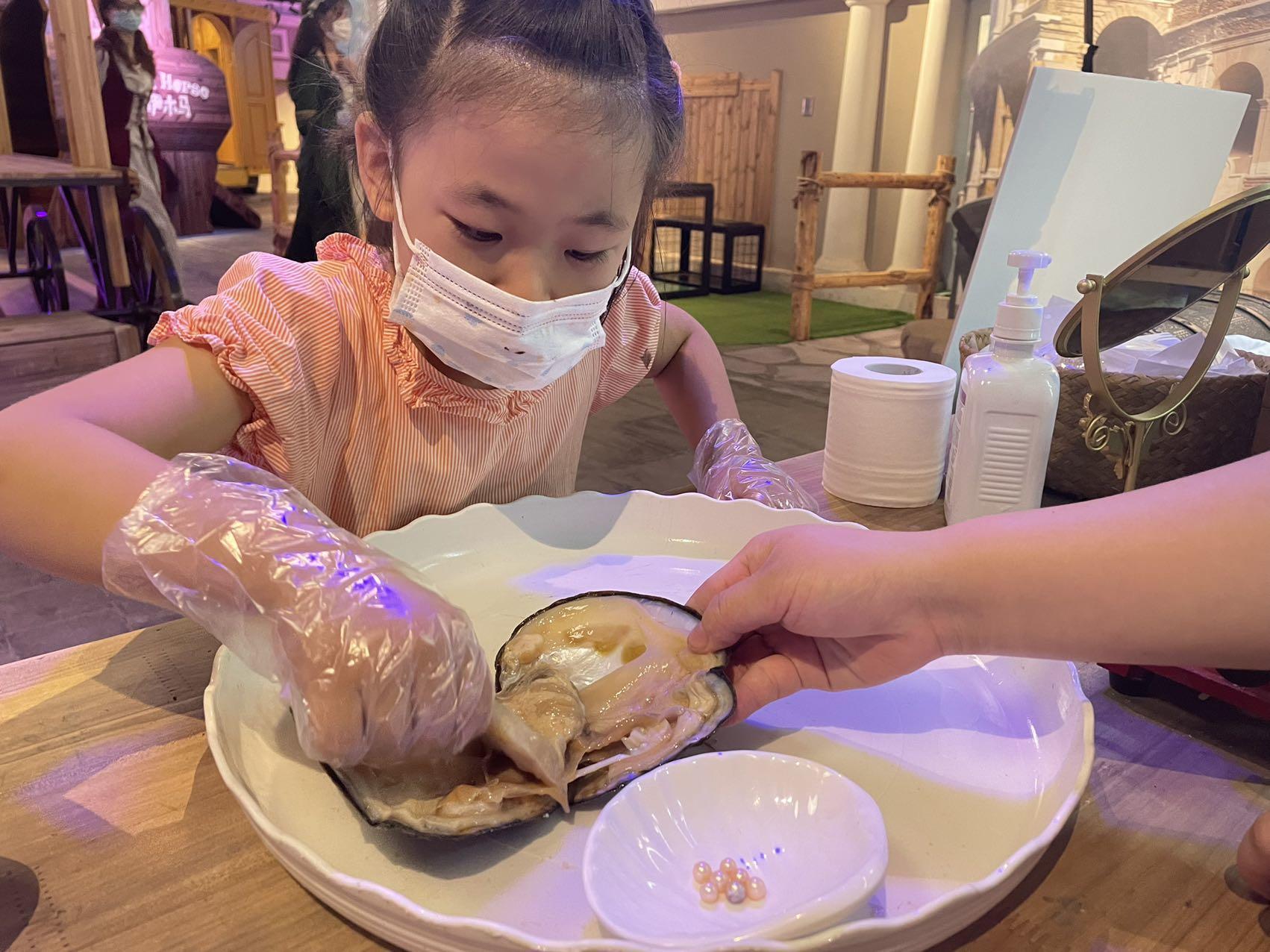 在来自意大利罗马的特莱维喷泉(又称“许愿泉”)的泉水中生活着满肚子宝贝的珍珠蚌。孩子可以亲自挑选珍珠蚌,取出里面的珍珠并做成饰品。