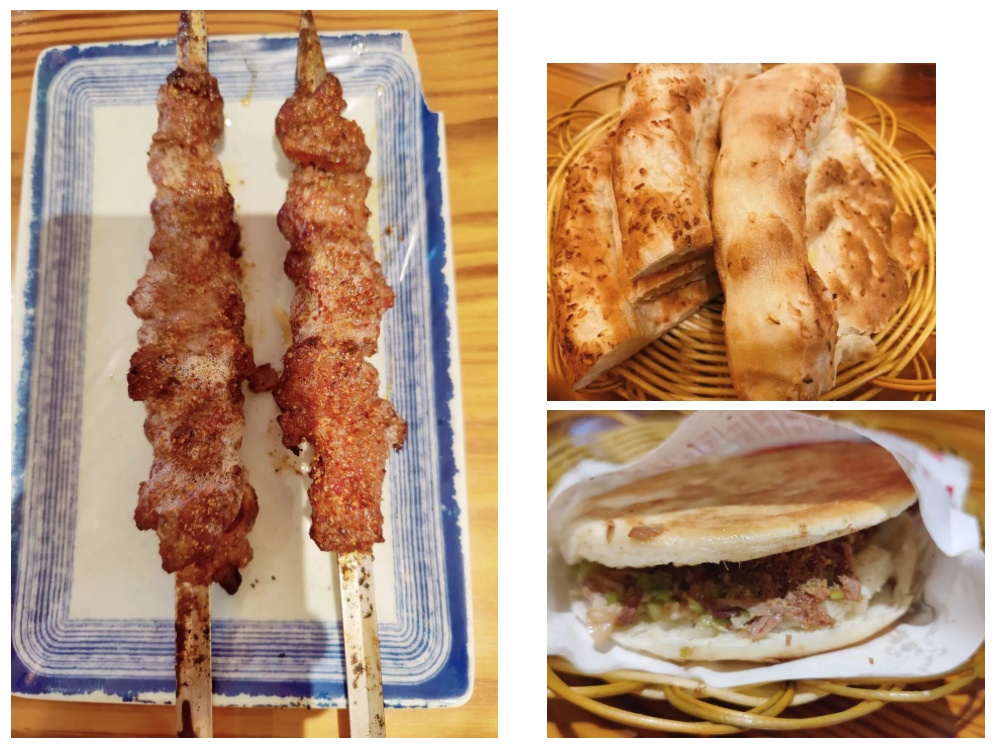 主食不想吃面的话,一碗羊汤配上一份肉夹馍或是新疆馕,就穿越到大西北的既视感。再来串用大铁签子的羊肉串,外表焦香内里软嫩,粒粒分明,十分过瘾。不过“肉食爱好者”大快朵颐时要注意,三伏天吃羊肉还是清炖的最适宜哦!